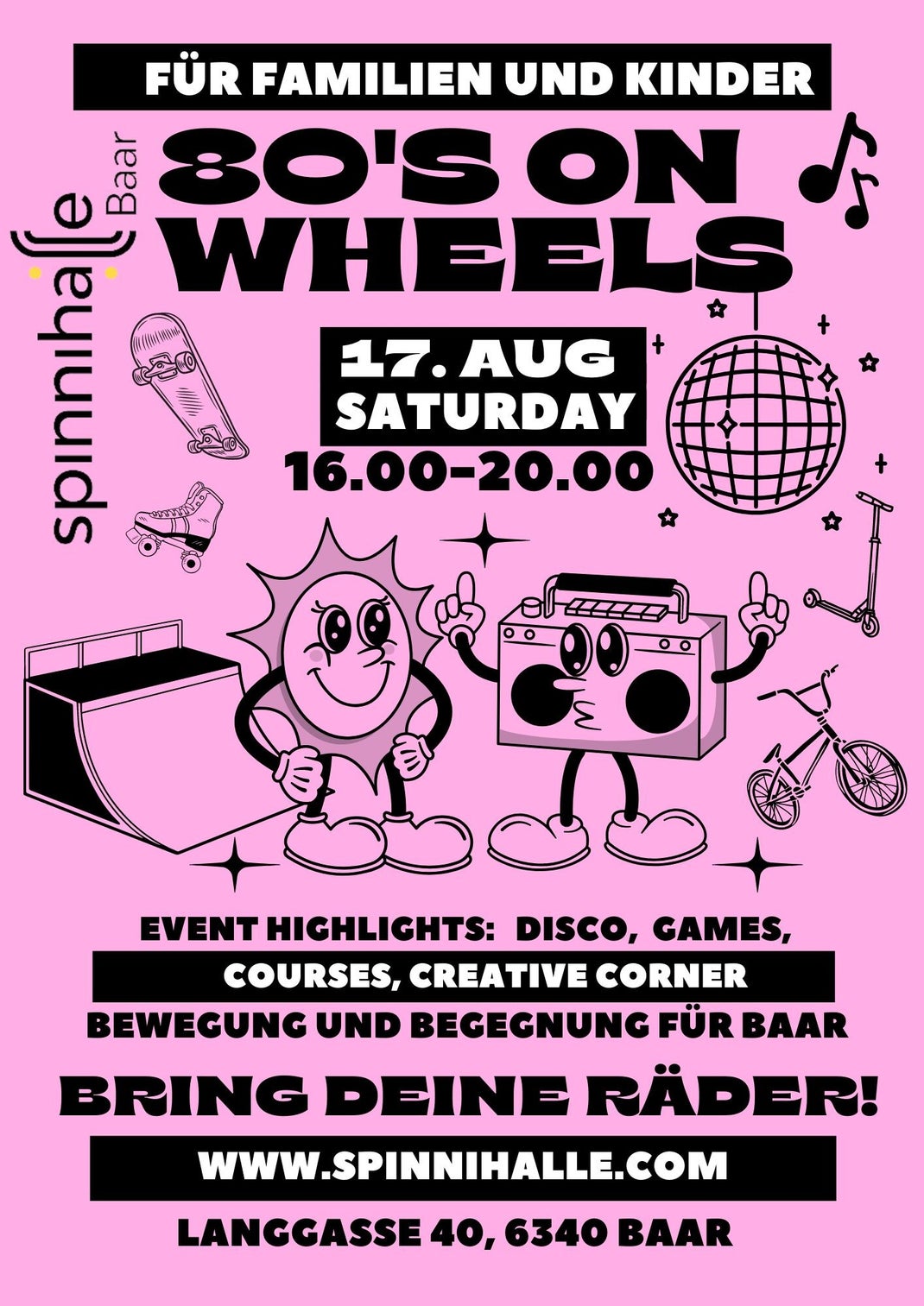 Unsere Geschichte begann mit dem Event „80s on Wheels“, einer lebendigen Zusammenarbeit mit der Spinnihalle Skatepark in Baar. Dieses Projekt markierte den Beginn einer spannenden Partnerschaft, bei der der Zauber der 80er auf den Nervenkitzel des Skateboardens traf. Das Event brachte Jung und Alt für einen Tag voller Tanz, Kunst, Handwerk, Spiele und natürlich Skateboarding zusammen. Es war ein großer Erfolg und ebnete den Weg für viele weitere kreative Projekte in der Zukunft.